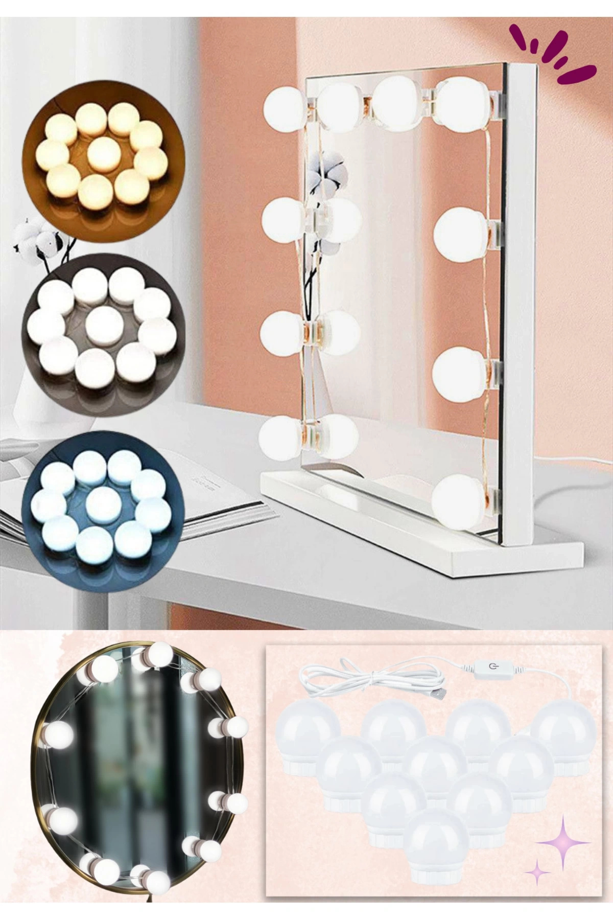 10 lu Makyaj Masası Banyo Aynası Giyim Odası Aydınlatma Hollywood Tarzı Nostaljik Led Lamba 3 MOD