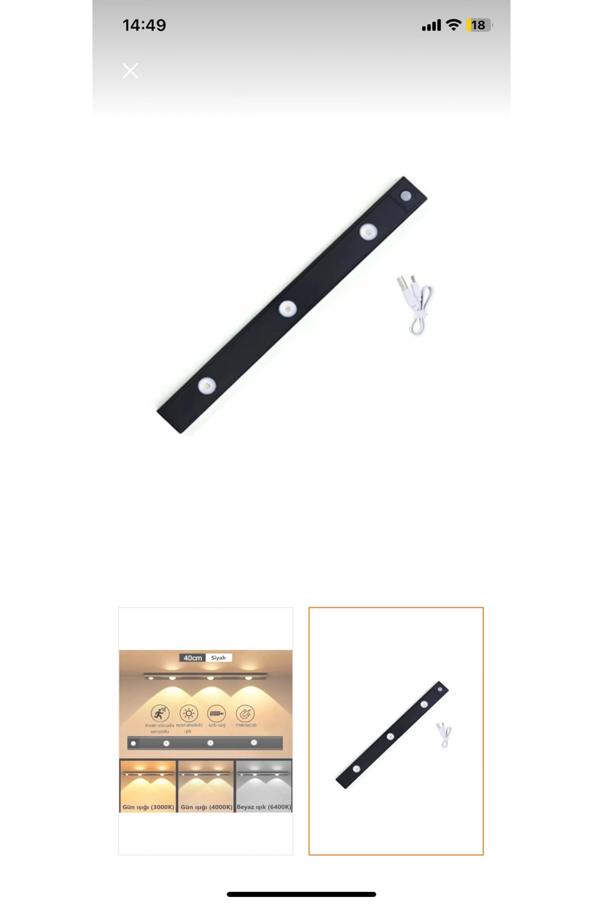 Sensörlü Şarjlı Dekoratif Gece Lambası Mutfak Mıknatıslı 3 Farklı Işık Renk 40cm ŞERİT LED