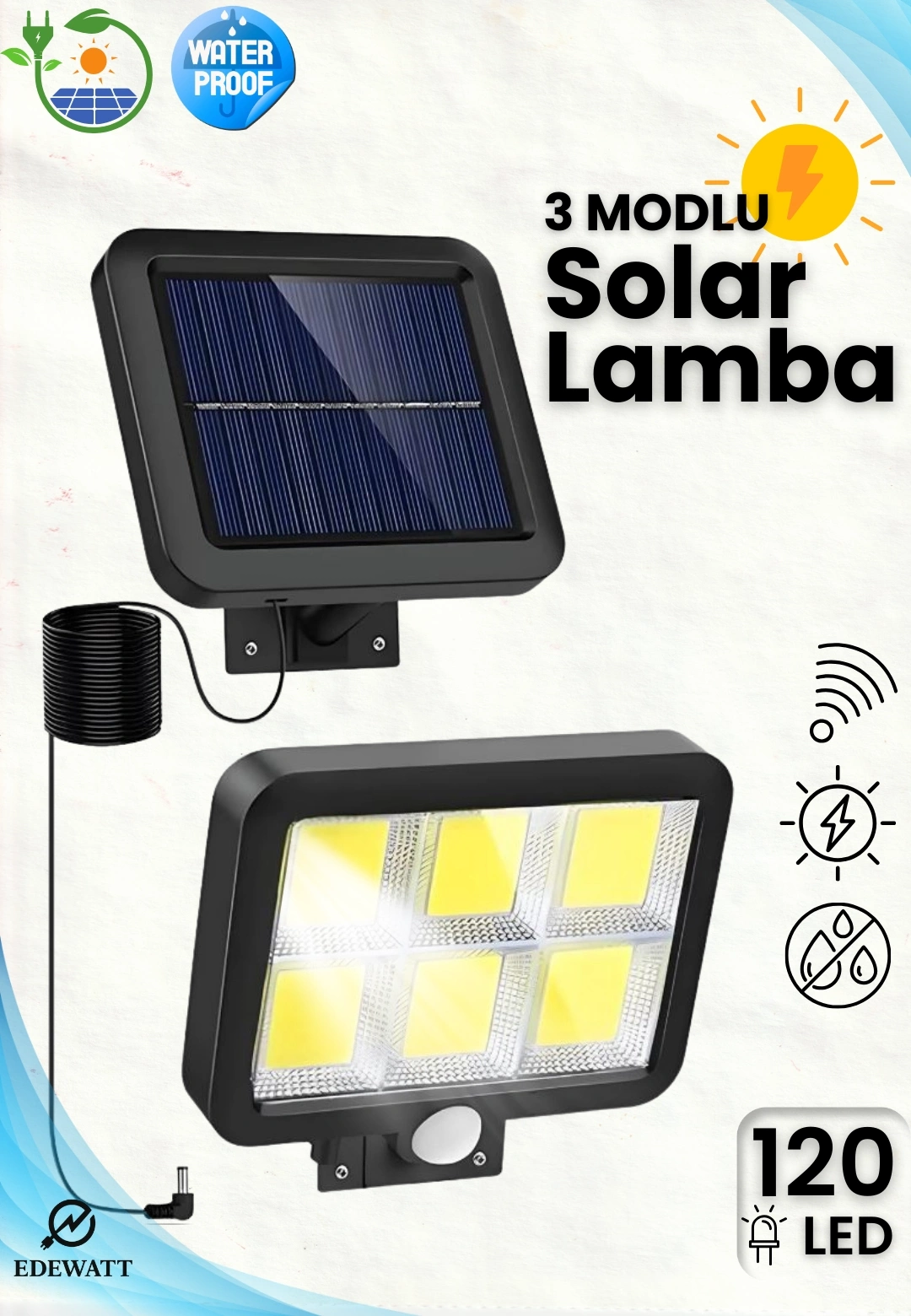 120 LED Ayrı Solar Panel Güneş Enerjili 3 Mod Duvar Lambası 5 METRE Kablolu Bahçe Aydınlatma