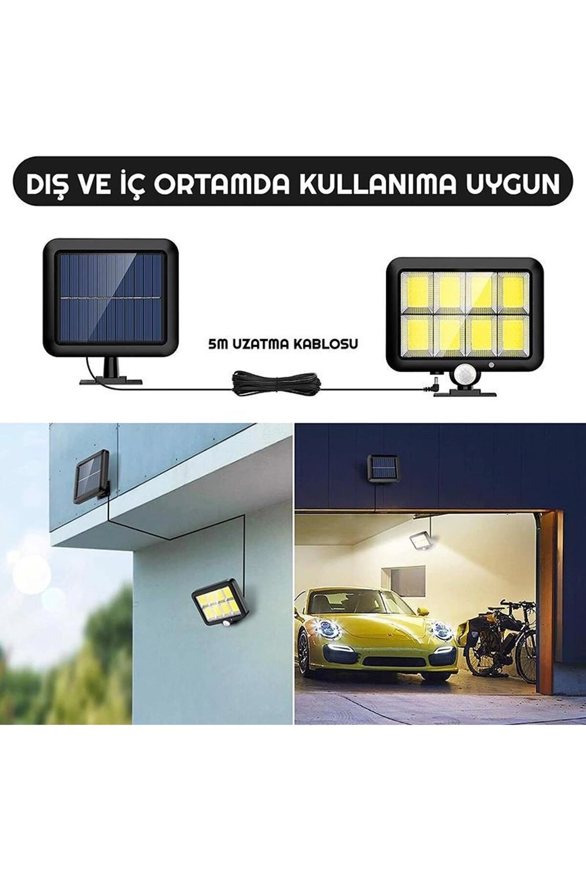 Güneş Enerjili Sokak Lambası Solar Duvar Lambası Hareket Sensörlü 3Mod Uzaktan Kumanda 120 Led Garaj