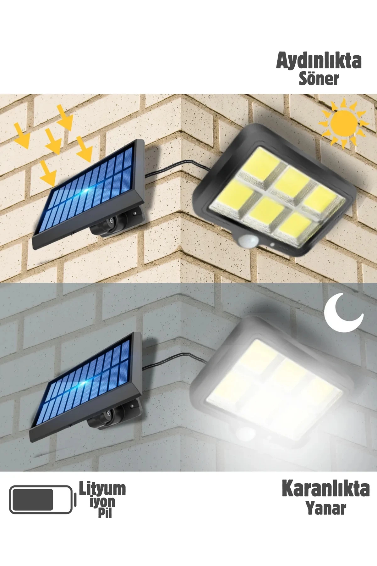 Güneş Enerjili Sokak Lambası Solar Duvar Lambası Hareket Sensörlü 3Mod Uzaktan Kumanda 120 Led Garaj