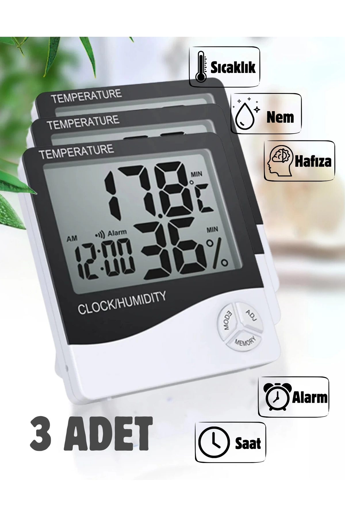 3 Adet Dijital Termometre Sıcaklık Ve Nem Ölçer Masa Saati Alarm