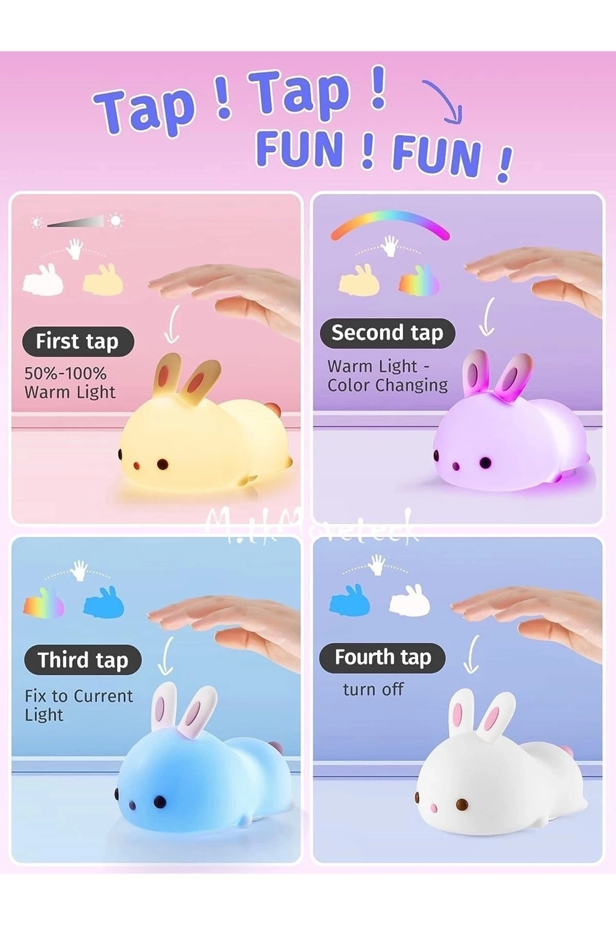 Çocuk Bebek Odası Gece Lambası Led Rgb Işıklı Sevimli Figürlü Renk Değiştiren Dokunmatik Silikon Pet