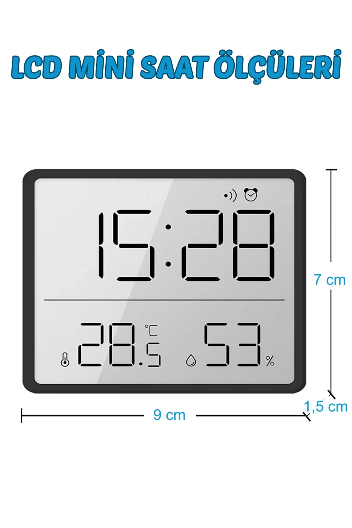 edewatt Mıknatıslı LCD Dijital Mini Saat – Alarm, Nem ve Sıcaklık Ölçer (9x7 cm)