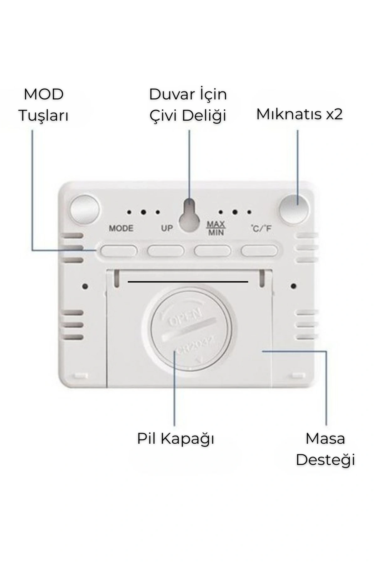 • Sıcaklık ve Nem Takibi: Anlık değerleri gösterir, ayrıca son 24 saat içindeki maksimum ve minimum sıcaklık ile nem değerlerini hafızasında tutar.