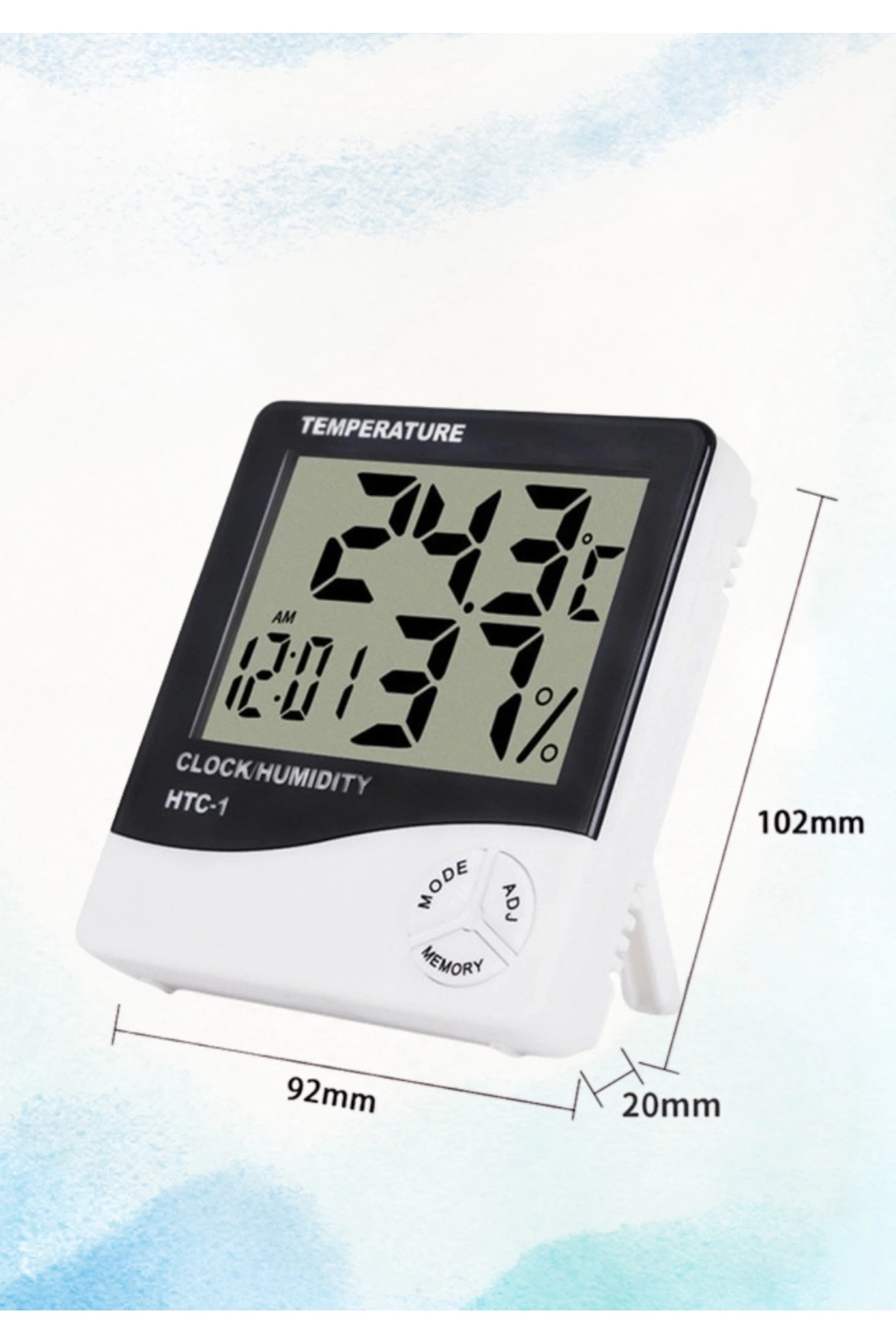 Dijital Termometre Hava Nem Ölçer Saat Oda Isı Sıcaklık Ölçer HTC-1 Tempature