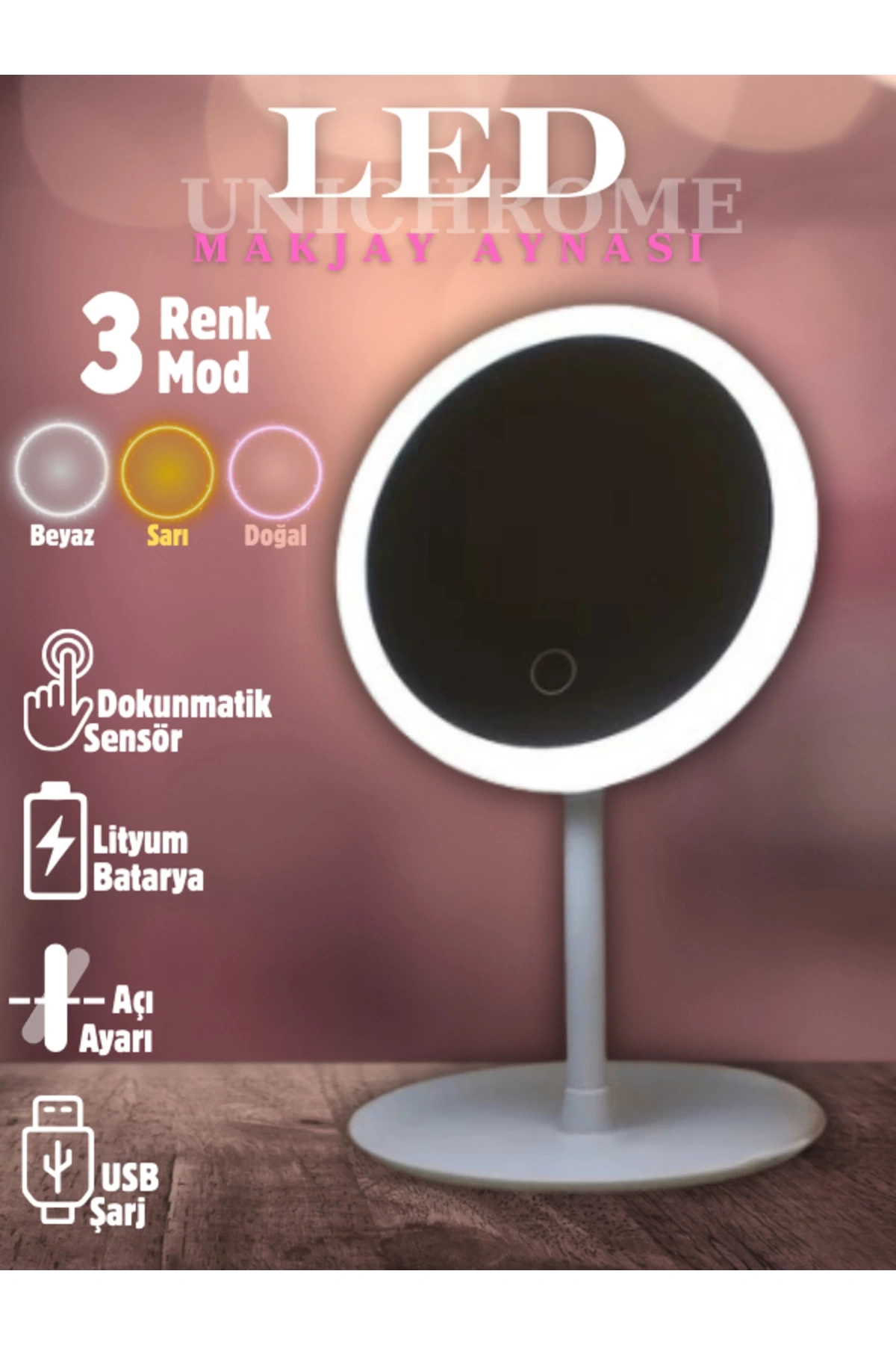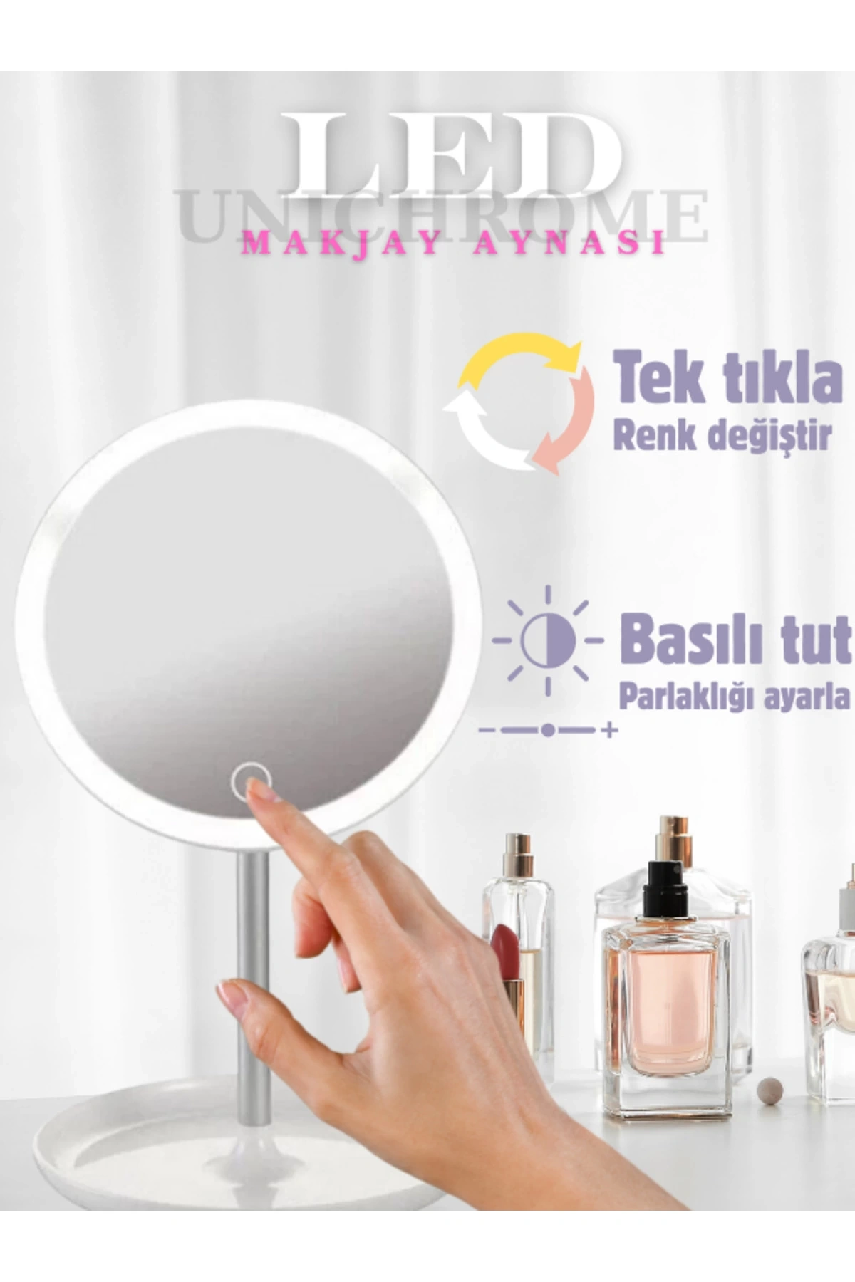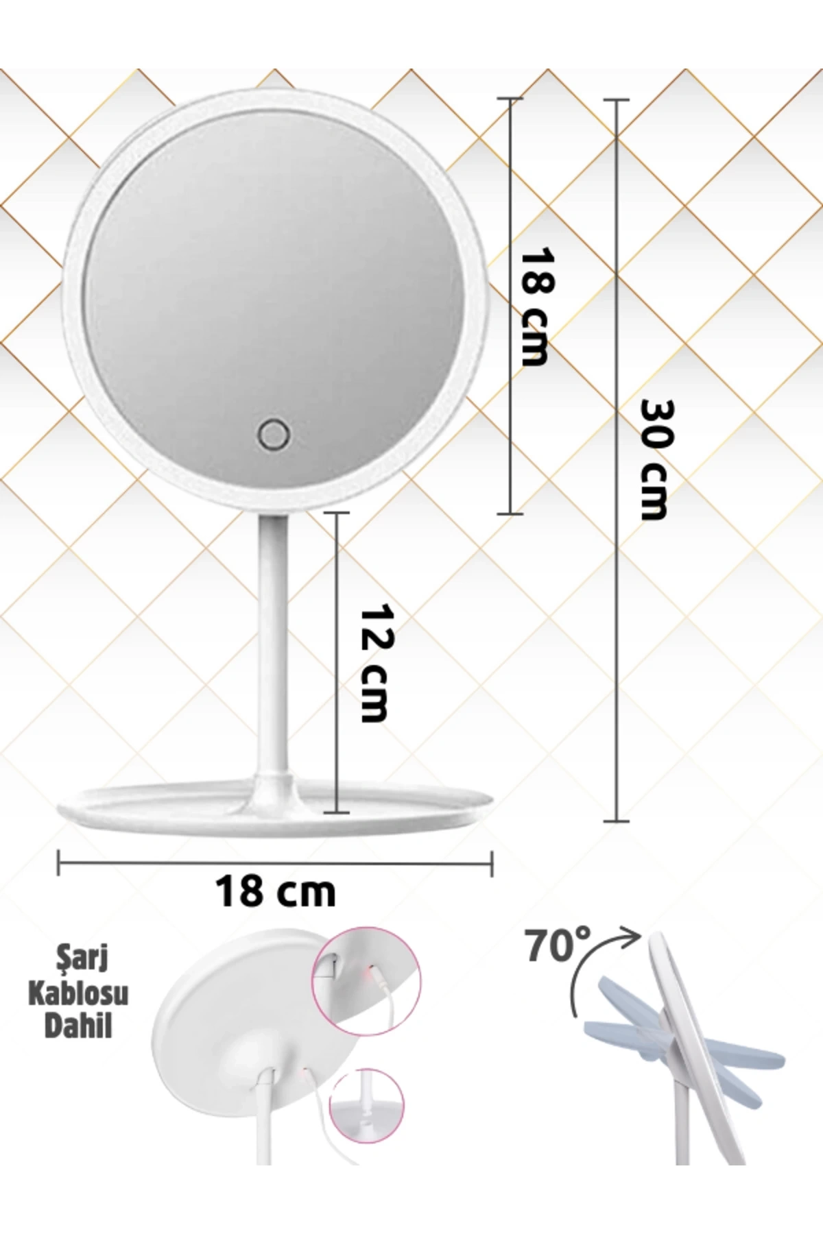Dokunmatik Led Işıklı Usb Li Yuvarlak Masa Üstü MakyajAynası Makyaj Aynası Ledli Makyaj Aynası LED Aydınlatma, ŞarjEdilebilir, Masaüstü, Dokunmatik Ekran Anahtarlı, 180 Derece Dönebilir Ultrageniş görüş alanı: Birden fazla görüş açısı sunar, böylece her zaman kendiniziiyi hissedersiniz Ayarlanabilir parlaklık: LED kozmetikaynalar parlak gün ışığı sağlar, aynayı açmak / kapatmak için "dokunmatikdüğmeye" uzun basarak ışıkları kısabilir veya aydınlatabilirsiniz. ; Yüksek Kalite ve 180 ° Döndürme: 180 °serbestçe döndürülebilir, böylece aynayı ihtiyaçlarınıza göre ayarlayabilir veözelleştirebilirsiniz. ; GELİŞTİRİLMİŞ TASARIM: Saklama kutusutasarımı, mücevherler, saatler, küpeler, bilezikler gibi kozmetik ürünleriniiçine alabilir ve masaüstünüzü dağınıklığından sizi kurtarır. ; Paket içeriği: 1xayna 1x USB kablosu Özellikler: Güç: 4W Giriş voltajı: 5 V / 1 A DeğişebilenLED ışıklar pil kapasitesi: 1000mAh Ölçüleri: En: 17 cm Boy: 27,5 cm;