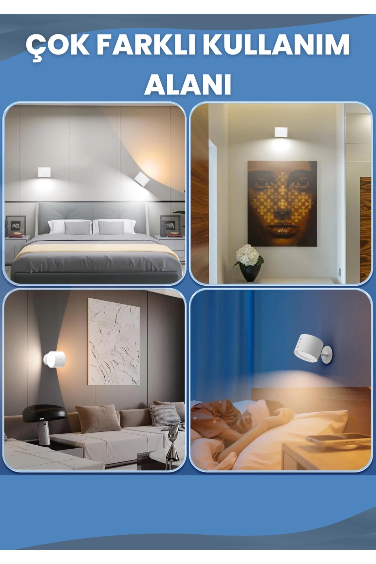 Mıknatıslı Uzaktan Kumandalı Çift Taraflı Duvar Aplik LED Aydınlatma 3 Renk USB Şarjlı