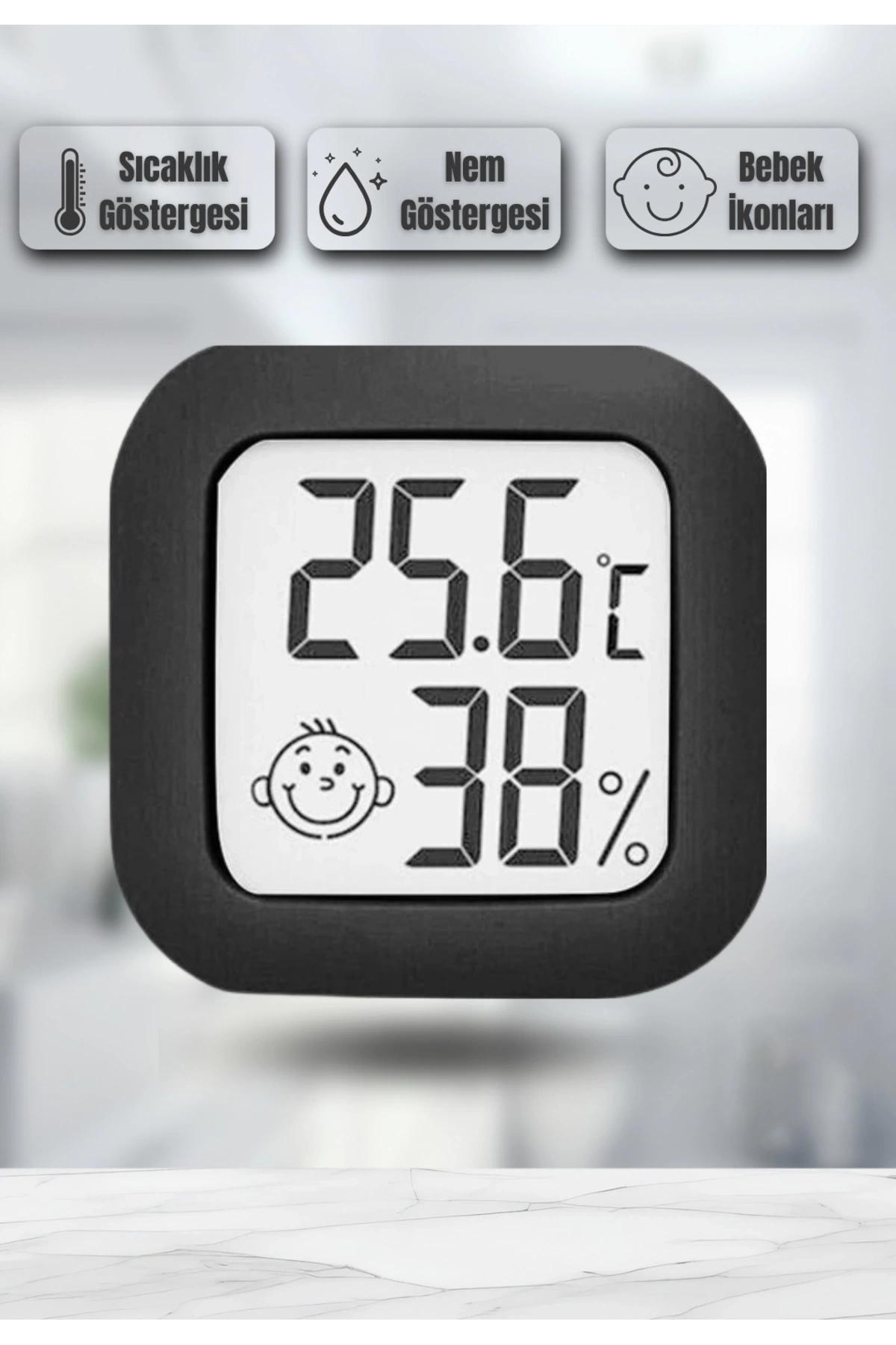 Mini Akıllı Sıcaklık Nem Ölçer LCD Oda Termometre Duvara Takılabilen Masaüstü Isı Göstergesi SİYAH