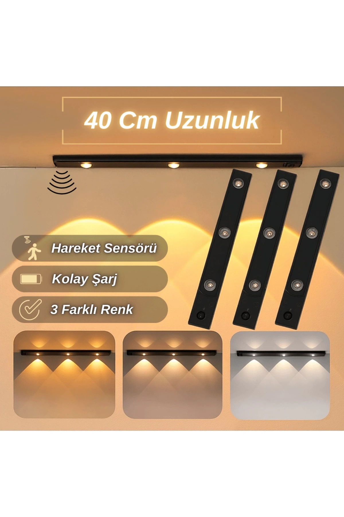 Sensörlü Şarjlı Dekoratif Gece Lambası Mutfak Mıknatıslı 3 Farklı Işık Renk 40cm ŞERİT LED