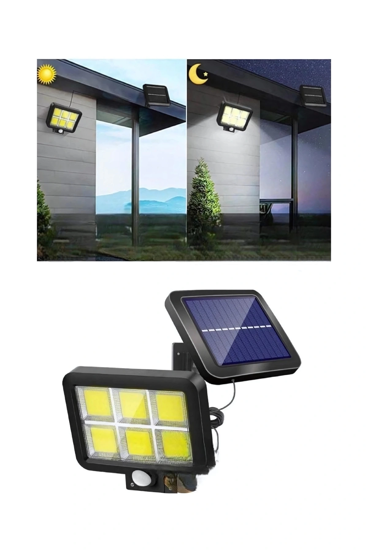 120 LED Ayrı Solar Panel Güneş Enerjili 3 Mod Duvar Lambası 5 METRE Kablolu Bahçe Aydınlatma