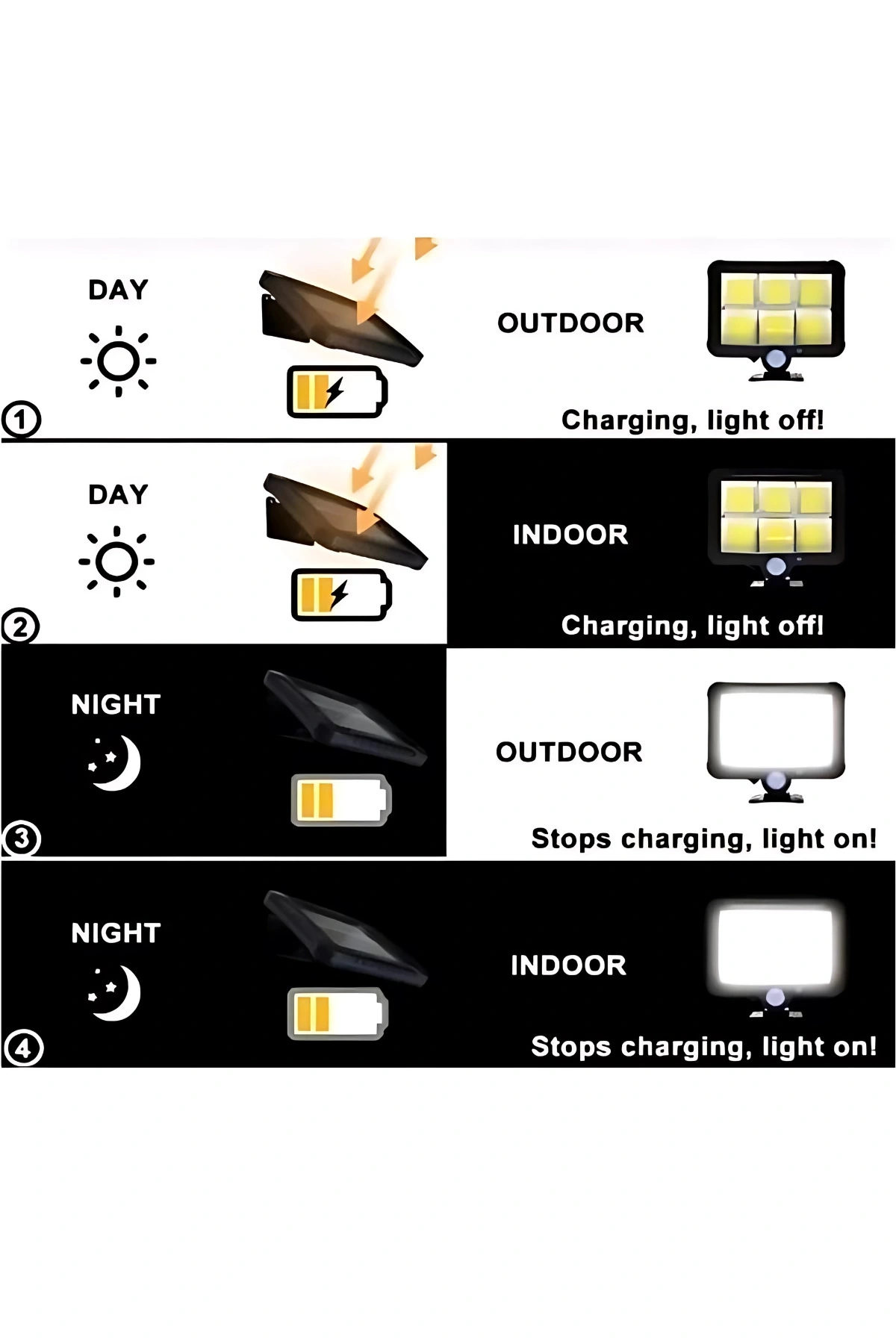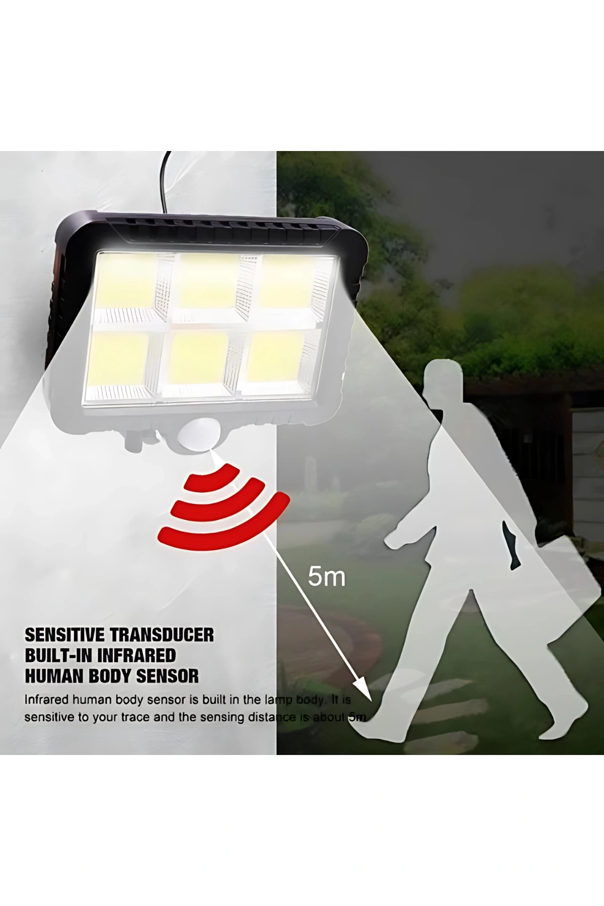 Güneş Enerjili Sokak Lambası Solar Duvar Lambası Hareket Sensörlü 3Mod Uzaktan Kumanda 120 Led Garaj
